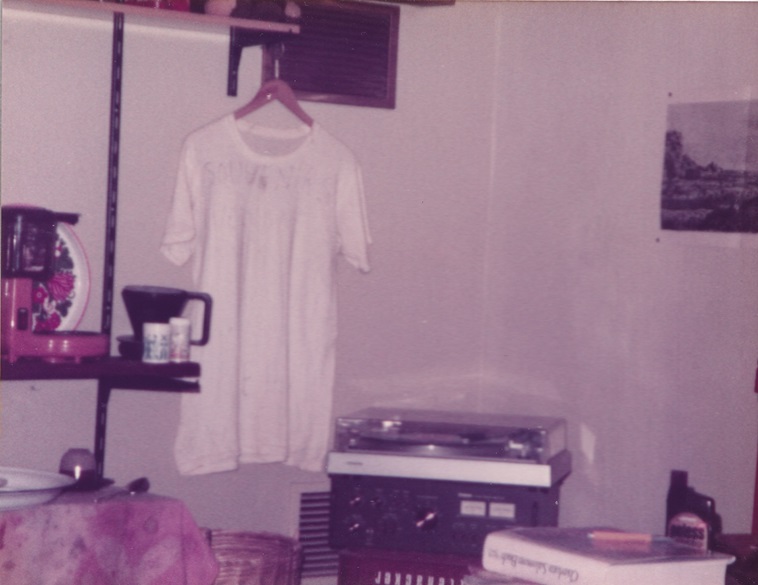 Das T-Shirt mit dem Spruch darauf ploppt immer mal wieder in meinem Gedächtnis als Erinnerung auf: "SOUVENIRS EVERYONE COMES IN THIS ROOM. JEAN CAMILLE D… 1974 -76" und im Geist wird bei mir automatisch ergänzt: "and Guy B...". Leider ist die Schrift auf dem T-Shirt nicht zu entziffern.