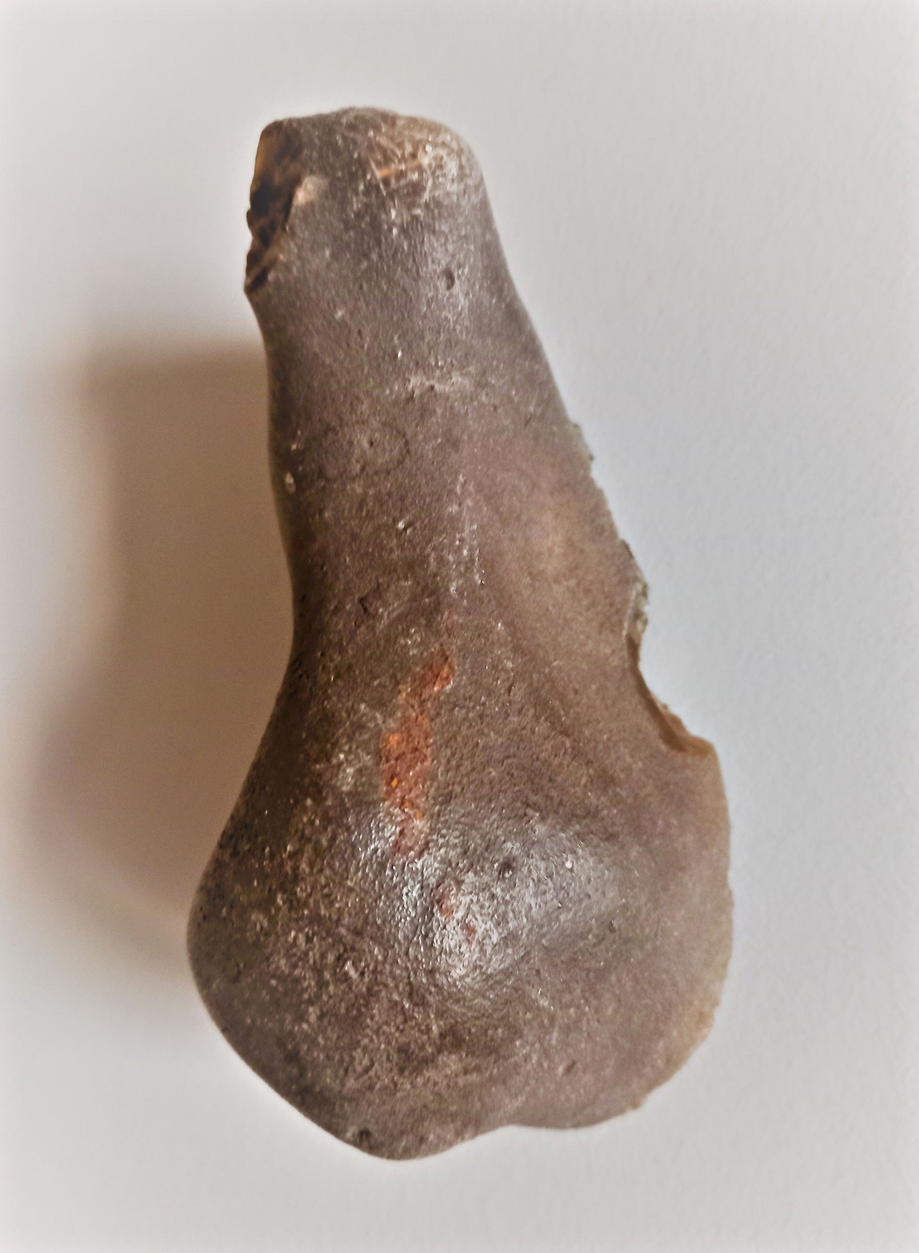 „Gebrochener Torso einer weiblichen Gestalt mit etwas dicklichem Hintern“ ist auf dem Kärtchen zu lesen. Die Notiz erinnert mich an den Fundort: „auf einem Sandweg gefunden am So 18. Juli 2004 bei Höpershöfen (Bötersen).“